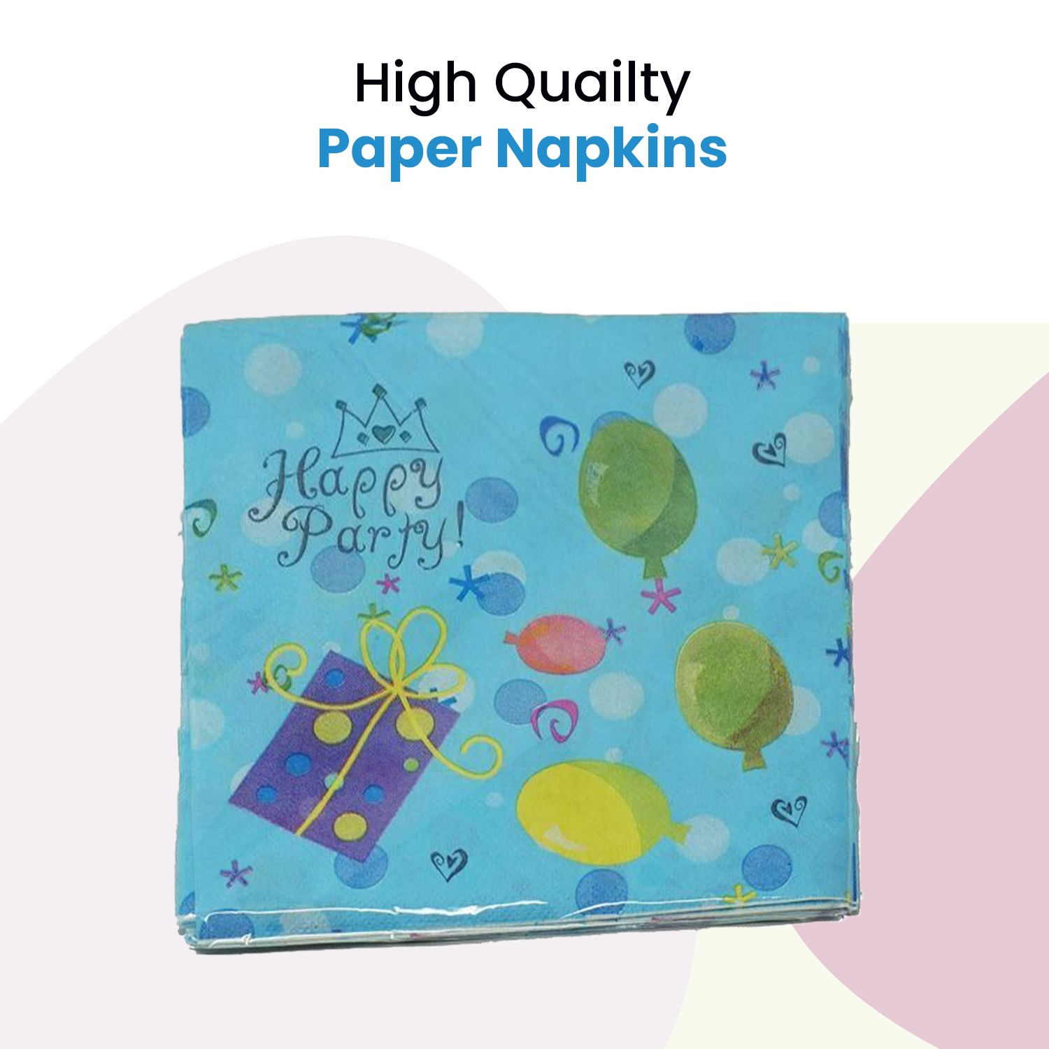 These sky blue paper napkins feature a cheerful, light sky-blue background adorned with white stars, swirls, and “Happy” slogans. Perfect for birthdays, anniversaries, and festive celebrations, they instantly enhance table settings.
