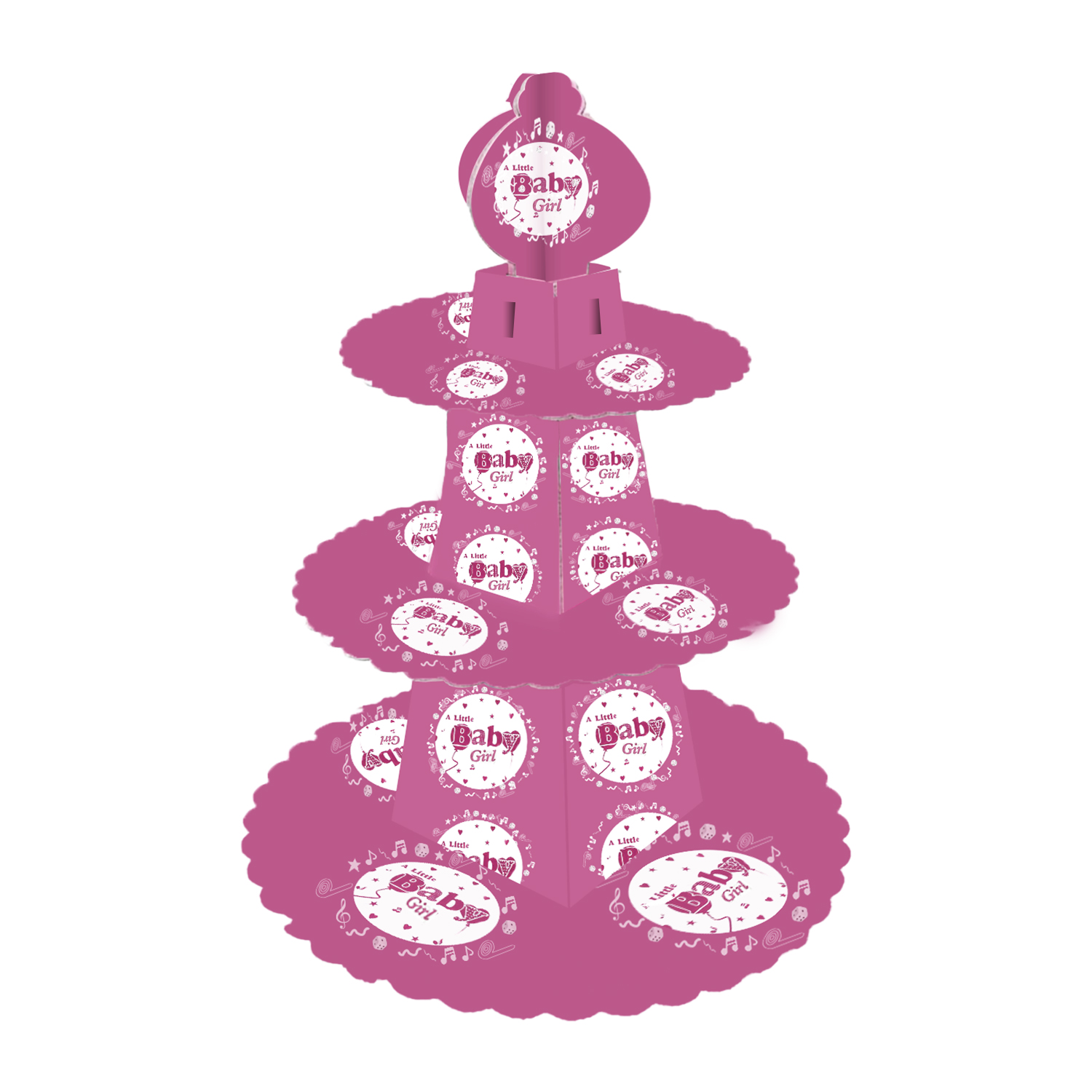The stand’s themed graphics include stars, musical notes, and baby motifs, making it ideal as a wedding cupcake display or for celebrating a baby girl’s arrival. Its design also complements birthday parties and festive gatherings.