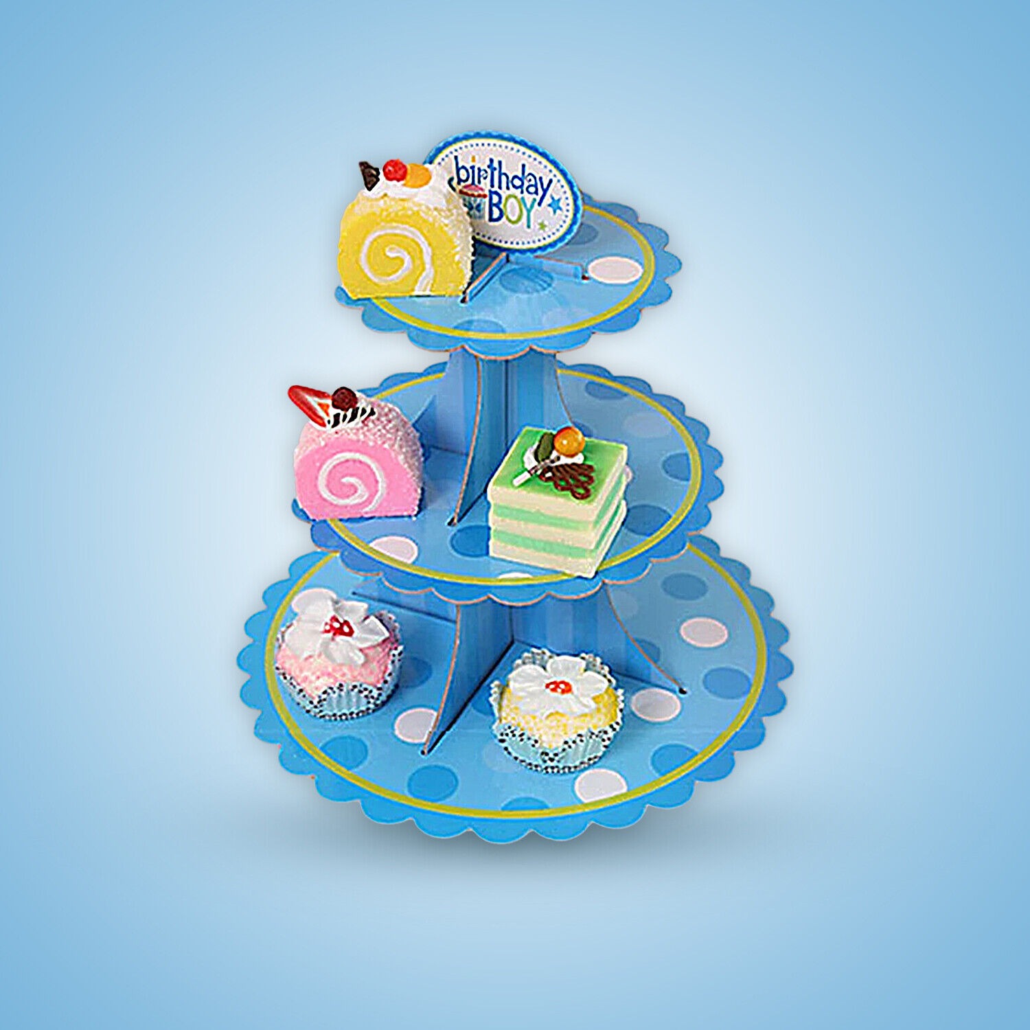 Blue Birthday Boy Cupcake Stand: This tiered cupcake stand is absolutely stunning! Perfect for parties, baby shower party favours, birthday party supplies, valentine’s day, weddings, restaurants, bakeries, and window displays! This gorgeous centrepiece is incredibly versatile. convenient, and reuse over and over again!