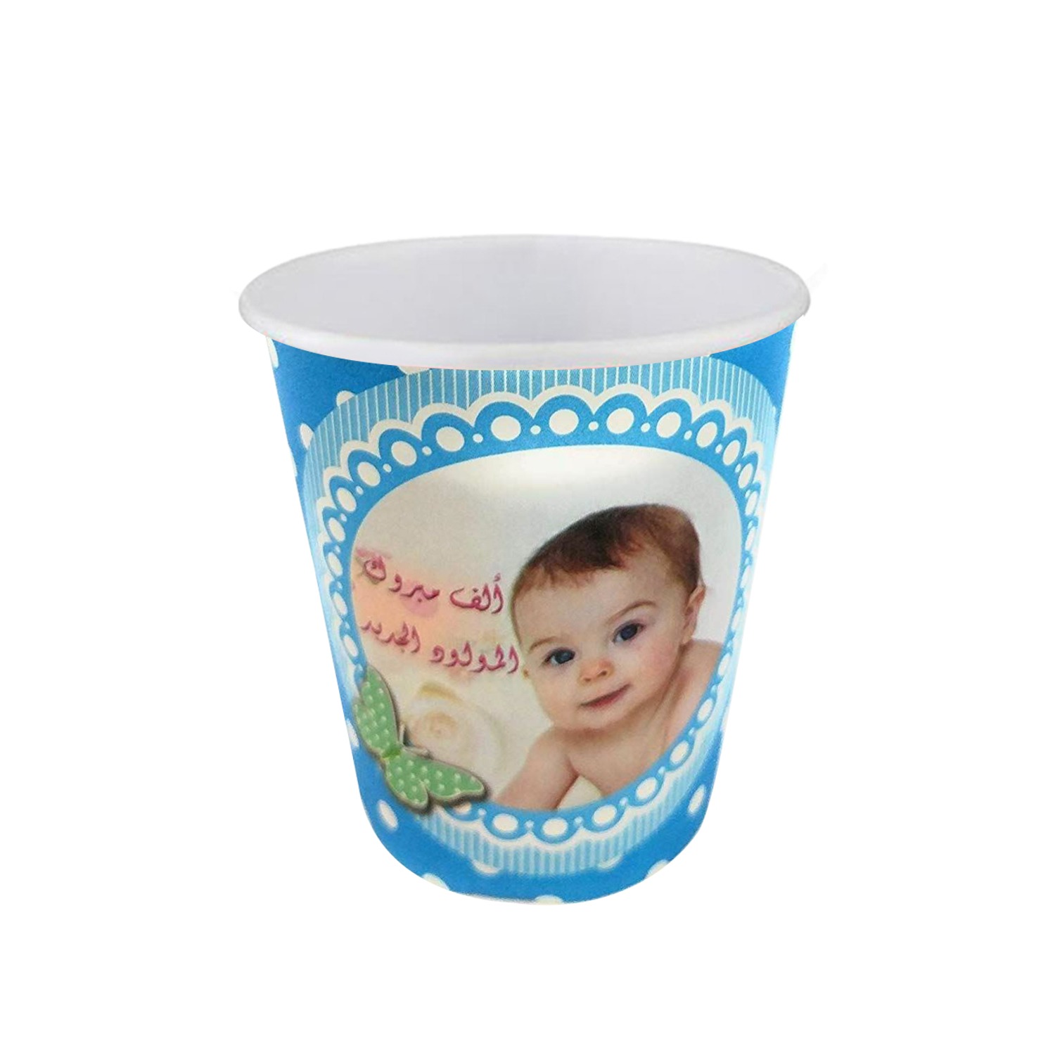 These blue disposable cups are perfect for celebrating a baby boy, featuring a cute cartoon baby illustration and “BABY BOY” text. Ideal for serving drinks in style at any party or gathering.