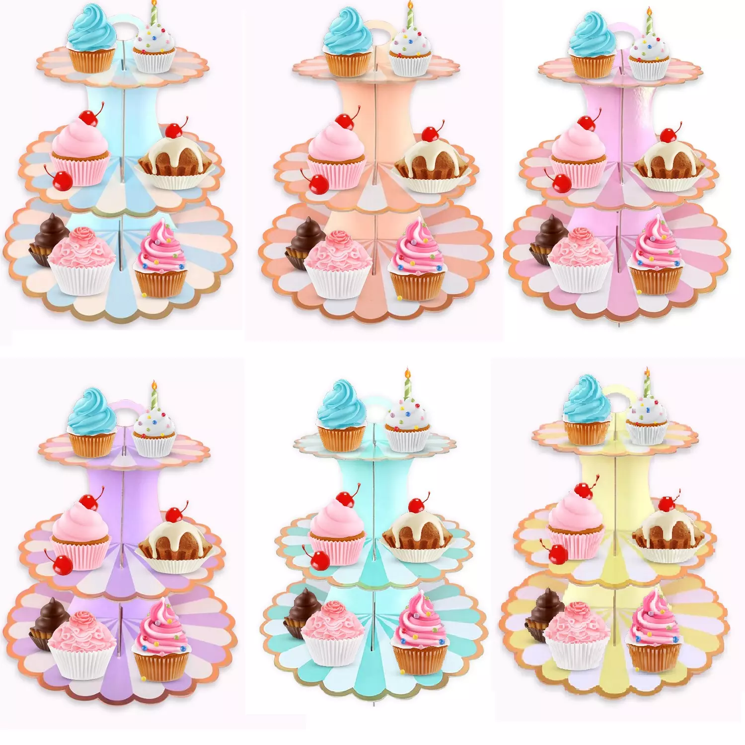 Available in pastel purple, muted yellow, light blue, blush pink, and deep blue, this cupcake display stand suits every event theme. These options make it ideal for cupcake stand ideas and festive celebrations.