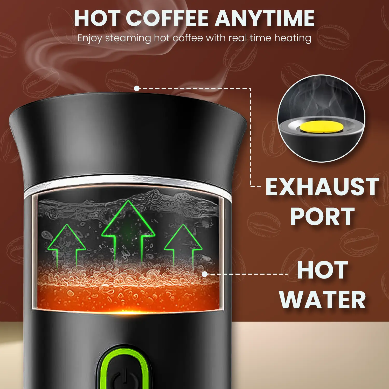 From road trips to office breaks, the Portable Espresso Maker 12V Self Heating Travel Coffee Maker offers unmatched convenience. More than just a coffee maker portable, it’s your personal barista anywhere.