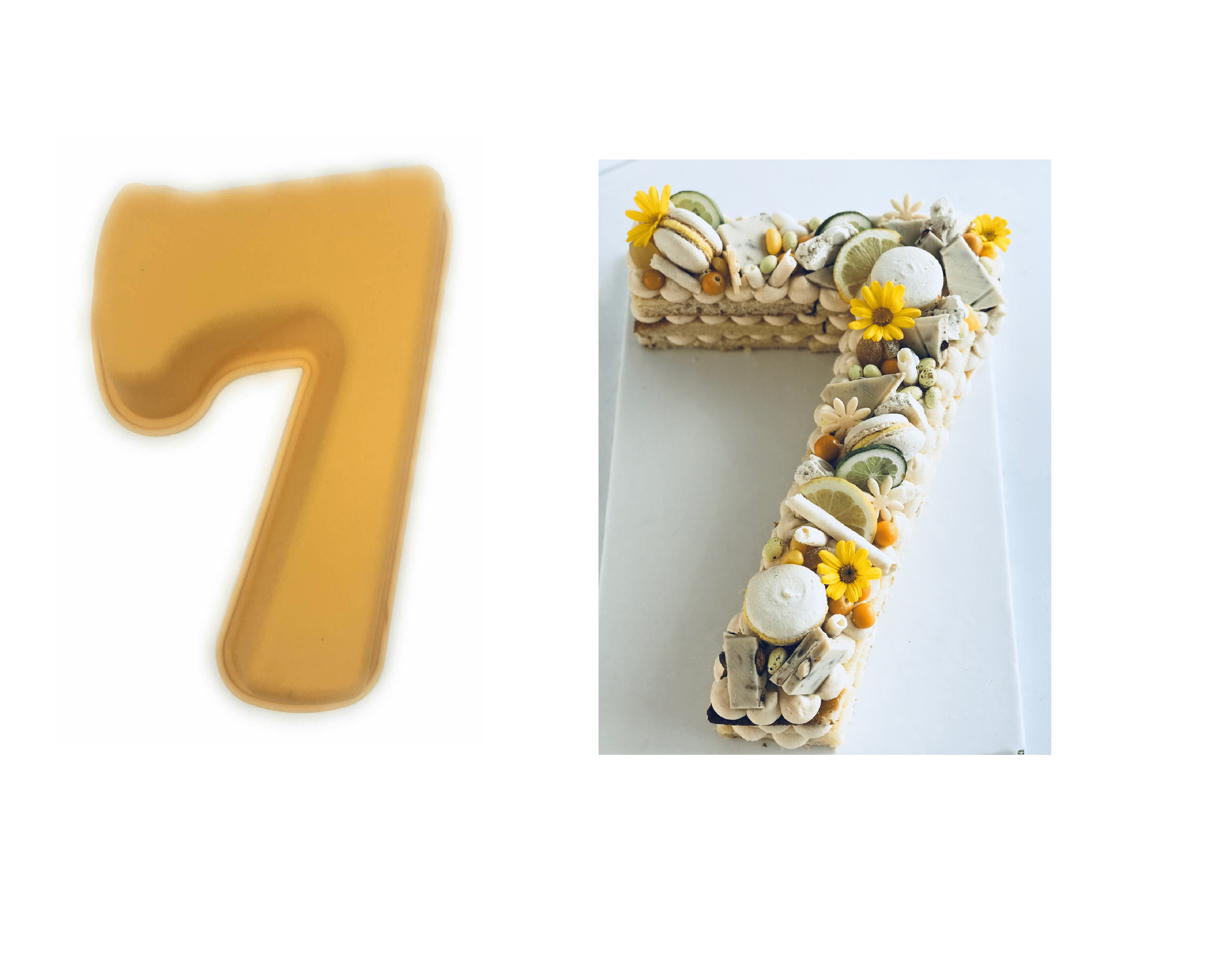 The mould features a bold number 7 with smooth, rounded edges and a consistent depth, allowing for thick cakes or biscuit layers. This biscuit easy mould ensures a polished and clean final product.