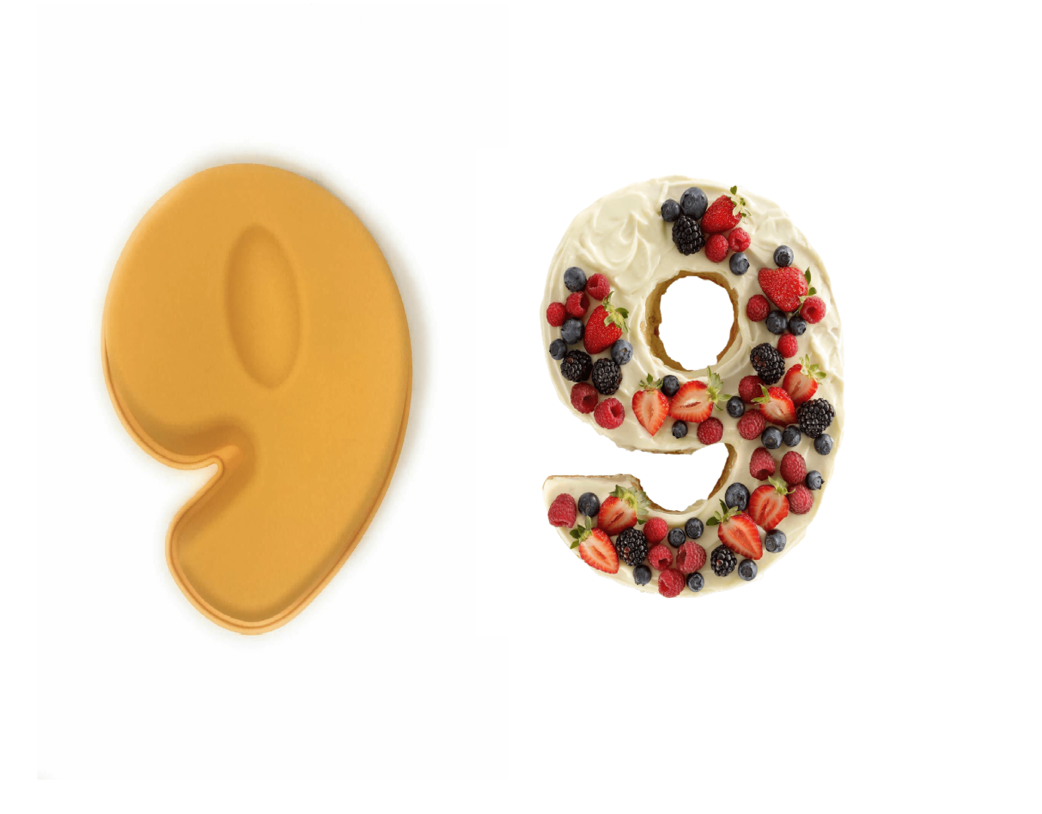 The mould features a bold number 9 shape with smooth, rounded edges and uniform depth. This silicone moulds biscuit ensures a clean and polished finish for cakes or biscuit layers.