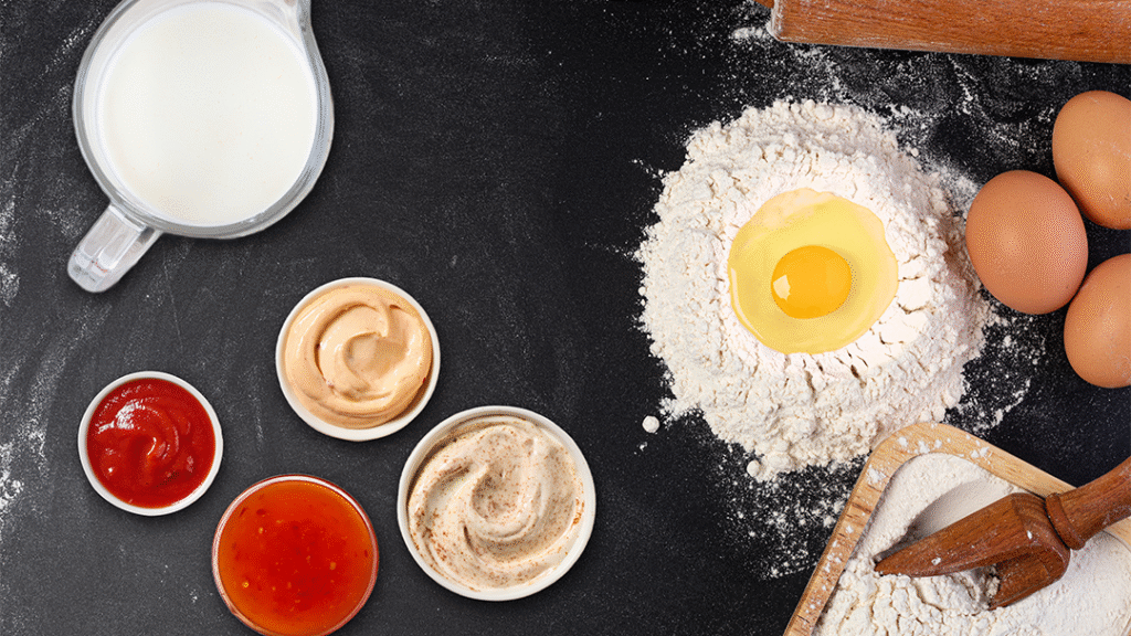 For the batter, you will need four simple components: plain flour, eggs, milk, and a pinch of salt. These blend to create the classic Yorkshire pudding-style batter that rises beautifully around the sausages.